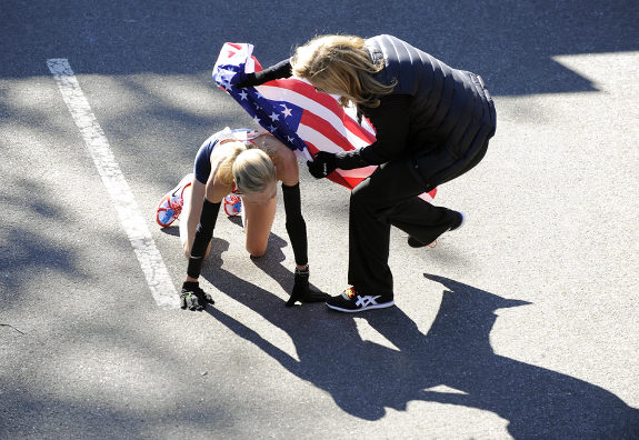 Ženska trka mi je bila zanimljivija, prvenstveno jer sam se probudio baš pred finiš. Čini mi se da se vodeća skupina cura držala zajedno dosta dugo. Za vrijeme mog već spomenutog odmora, stvari su se iskristalizirale. Na čelu je ostala skupinica od tri cure. Amerikanka Shalane Flanagan i dvije Kenijke, Edna Kiplagat i Mary Keitany. Oregonka Shalane je izgledala prilično opasno, no s gazelama se nikad ne zna. Ili baš naprotiv, uglavnom se zna. Tako je bilo i ovaj puta. Prvo je Keitany bacila fintu kao da će je preći, i kad se Flanaganka još malo zapuhala, Kiplagat je pružila korak i počela ubrzavati. Keitany ju je još neko vrijeme pratila, ali se pritom umorila, pa je završila treća.