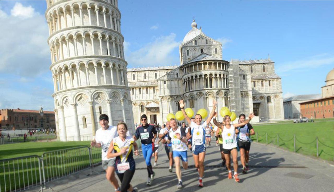 Lijepi maraton (i polumaraton) uz mediteransku obalu Ligurskog mora, sa startom i ciljem na jednom od najspektakularnijih svjetskih trgova, u mjestu Pisa u Toscani. Iako je Kosi toranj u Pisi na katedralnom trgu (Trg čudesa ili Piazza dei Miracoli), sjeverno od stare gradske jezgre, najpoznatija vizura grada, on je samo jedan od mnogih umjetničkih djela i građevina u gradu. Na katedralnom trgu nalaze se još i katedrala (Duomo), krstionica i Camposanto Monumentale (monumentalno groblje). Ovi su spomenici 1987. god. upisani na UNESCO-v popis mjesta svjetske baštine u Europi.