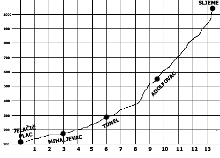 – 2. km je 200m nakon što se uđe u Ksaversku (između Mirogojske i benzinske), i tu isto ima ukupno 12m uspona.